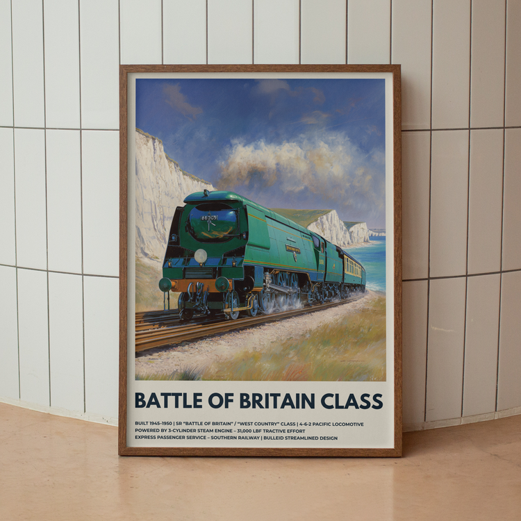 Built for speed and beauty, these locomotives hauled famous trains through the rolling countryside of Devon, Dorset, and Kent. Perfect for collectors, rail enthusiasts, and lovers of classic design, this print blends nostalgia and artistry — a true tribute to Britain’s golden age of steam.